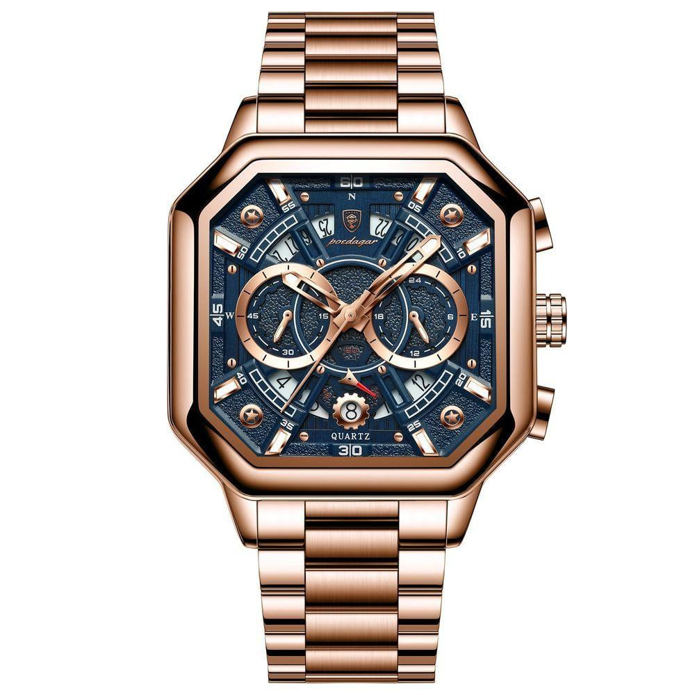 Relógio De Quartzo Com Cronógrafo Mostrador Luminoso Pulseira Em Aço Inoxidável 5atm Azul Rose