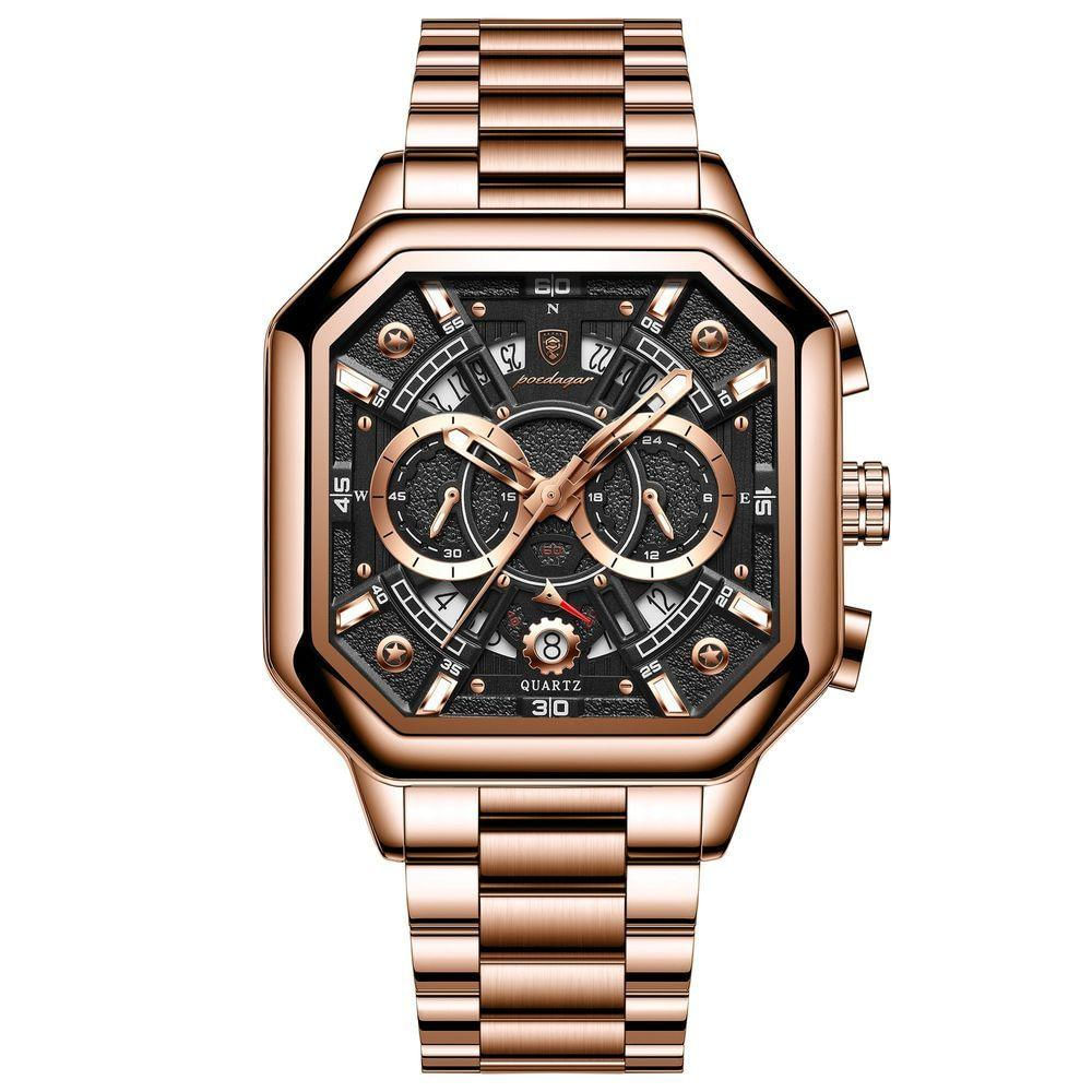 Relógio De Quartzo Com Cronógrafo Mostrador Luminoso Pulseira Em Aço Inoxidável 5atm Rose Gold