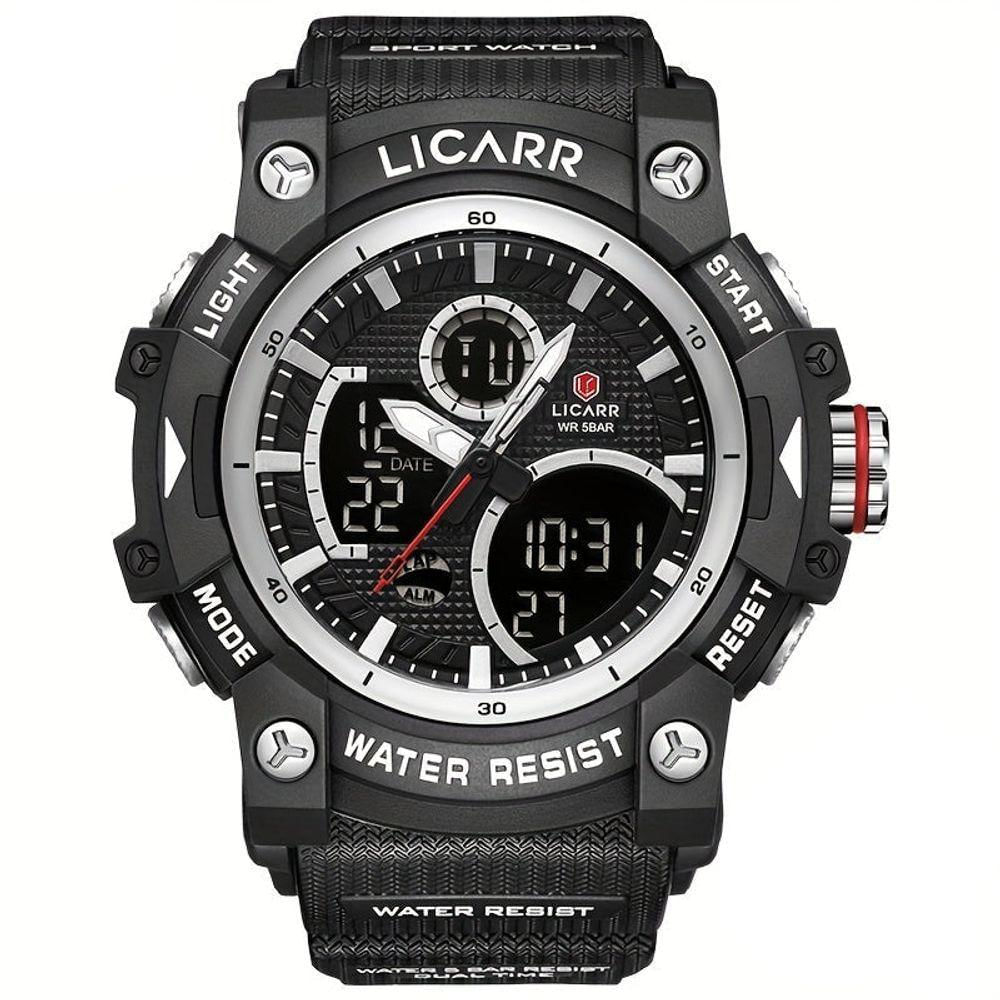 Relógio Desportivo Digital Masculino Duplo Display A Prova De água 5atm Estilo Casual Prateado Preto A