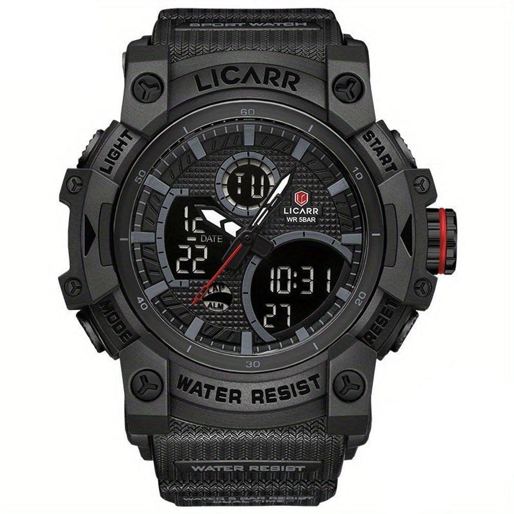 Relógio Desportivo Digital Masculino Duplo Display A Prova De água 5atm Estilo Casual Preto