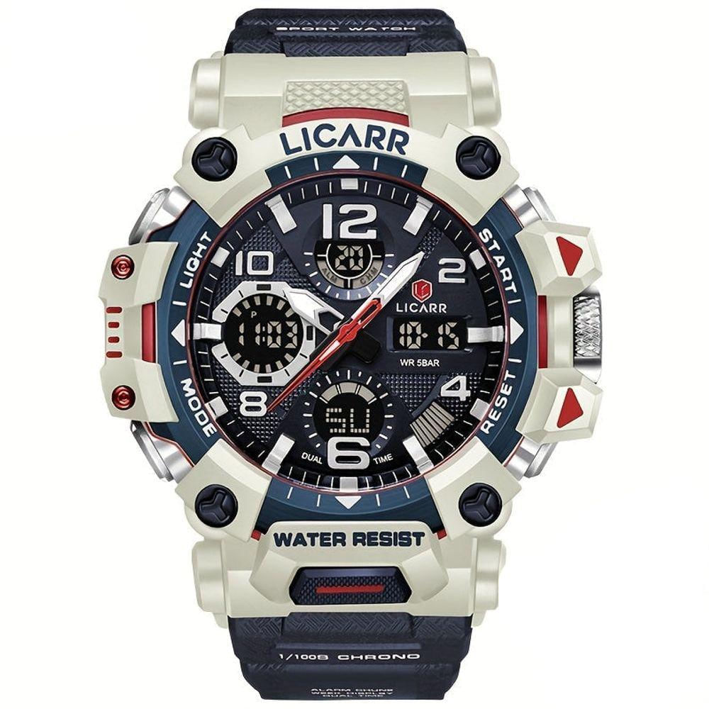 Relógio Digital Masculino à Prova De água 5atm Duplo Display Esportivo Quartzo Azul Escuro