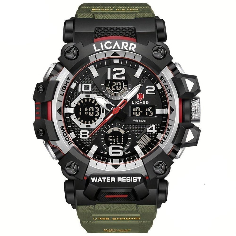 Relógio Digital Masculino à Prova De água 5atm Duplo Display Esportivo Quartzo Exército Verde
