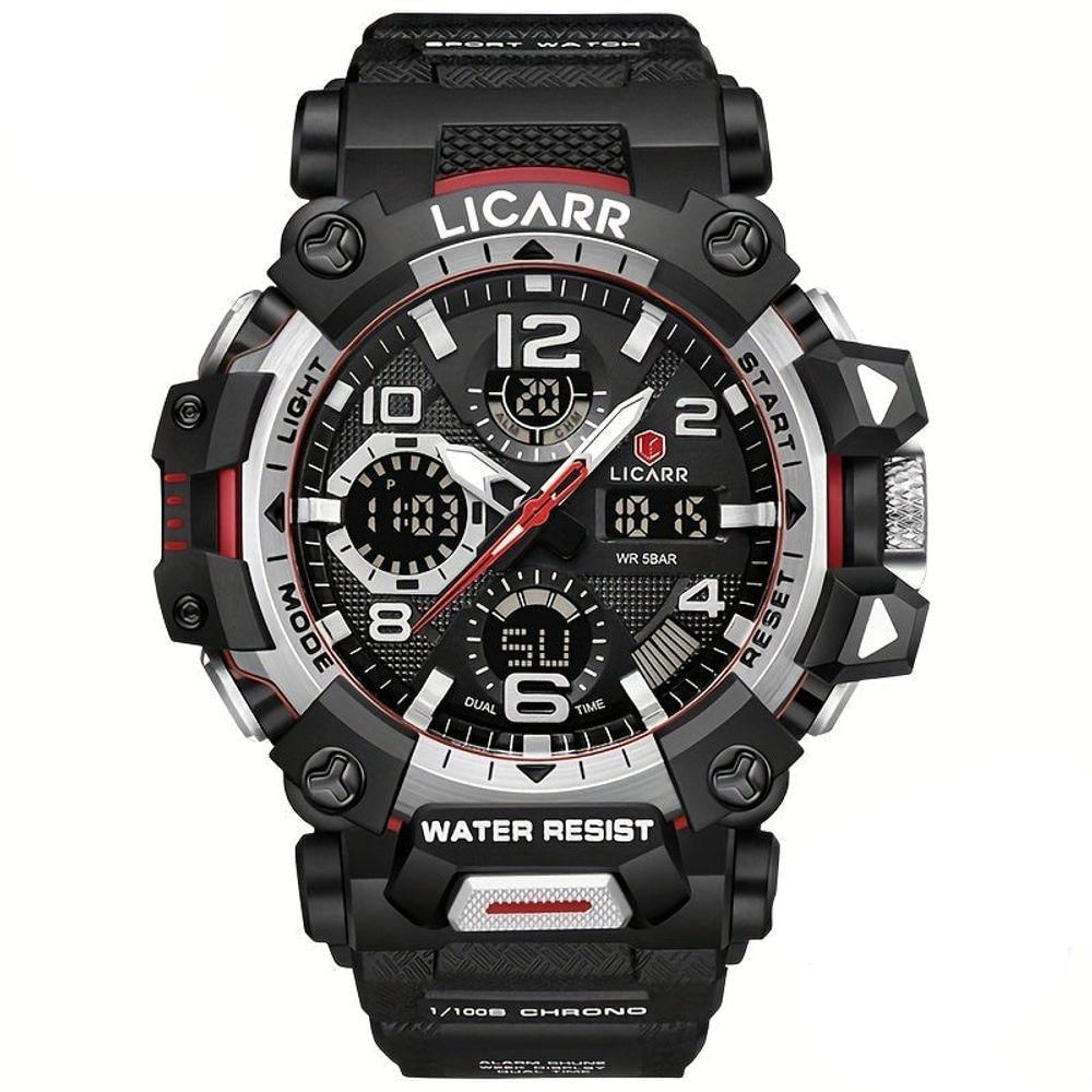 Relógio Digital Masculino à Prova De água 5atm Duplo Display Esportivo Quartzo Prateado Preto