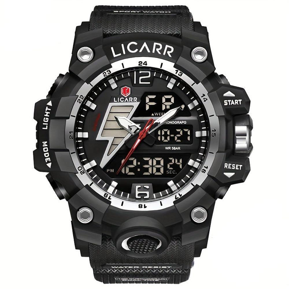Relógio Esportivo Exibição Dupla Masculino 5atm à Prova De água Quartzo Estilo Militar Prateado Preto