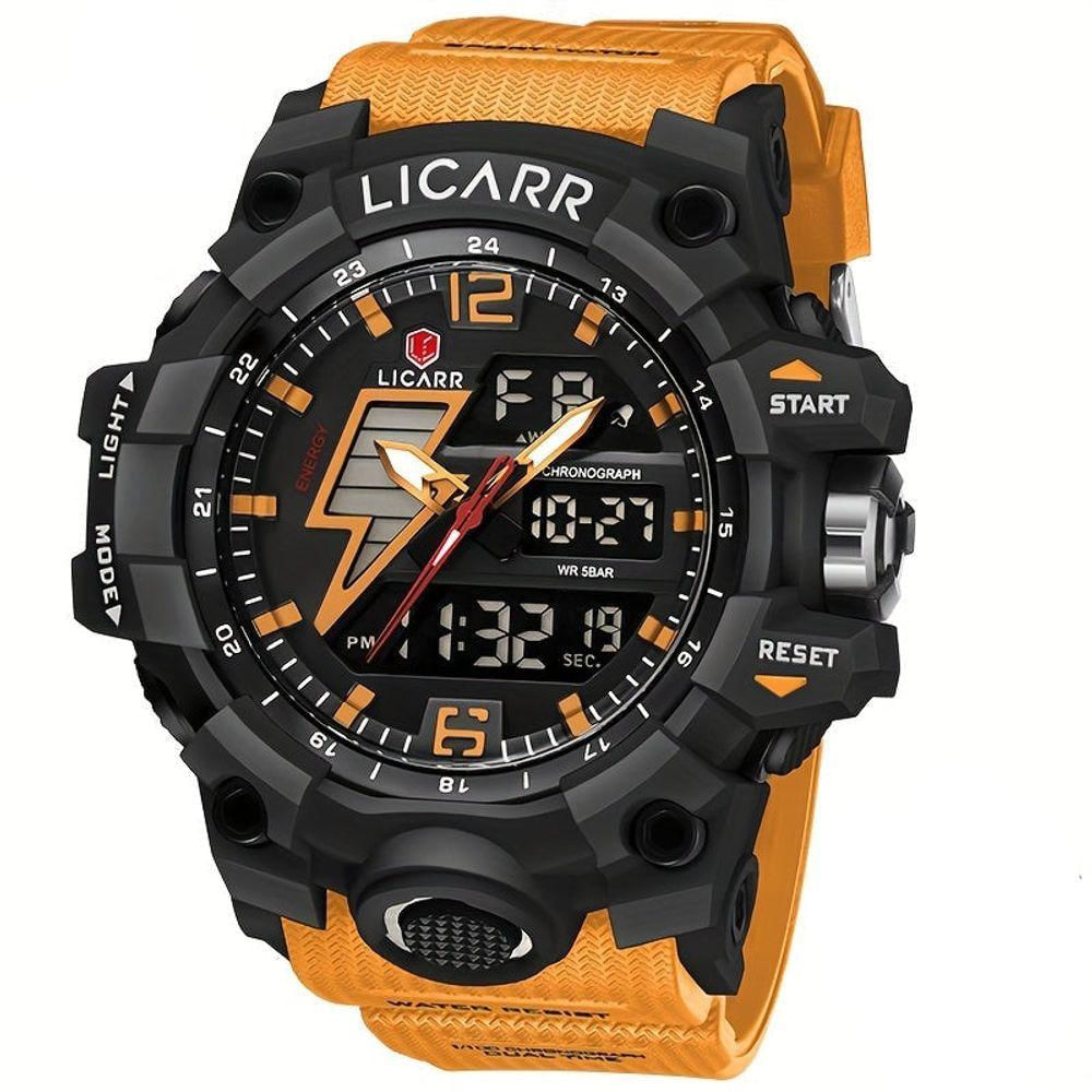 Relógio Esportivo Masculino Com Cronógrafo Analógico Digital Duplo Display 50m À Prova Da Água Laranja