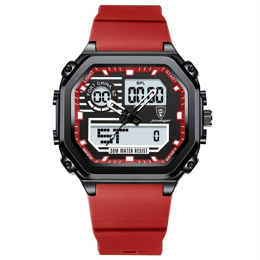 Relógio Esportivo Masculino Pulseira Em Silicone Display Híbrido Digital Analógico Vermelho