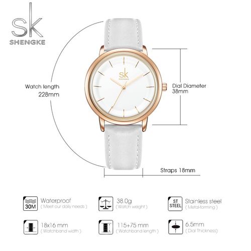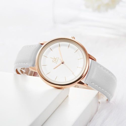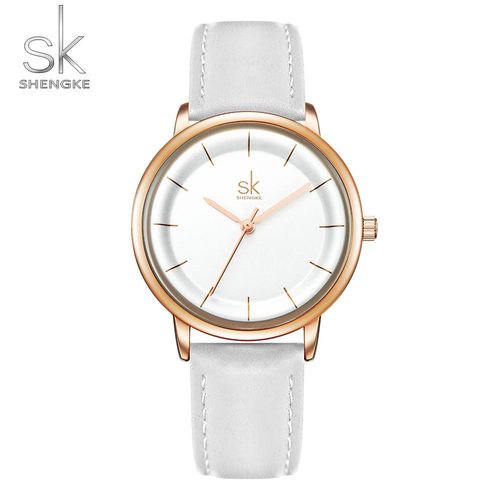 Relógio Feminino Shengke Simples de Couro à Prova D'água preto