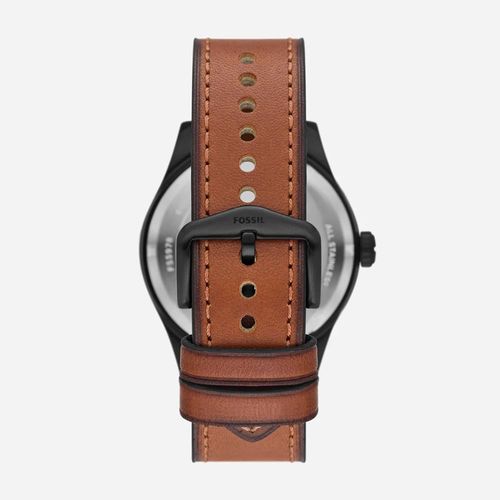 Caixa de Aço Inoxidável Pulseira de Couro Legítimo Marrom Vidro de Cristal Mineral Fundo Rosqueado Resistente à Água 10 Atm Diâmetro / Largura da Caixa: 46.00 MM Altura da Caixa: 12.00 MM Linha: Fossil Defender Funções: Analógico, Solar, Calendário Duplo (Com opção dos dias da semana em inglês e espanhol) Mostrador Preto com Todos os Números Alimentação do Maquinário: Energia Solar