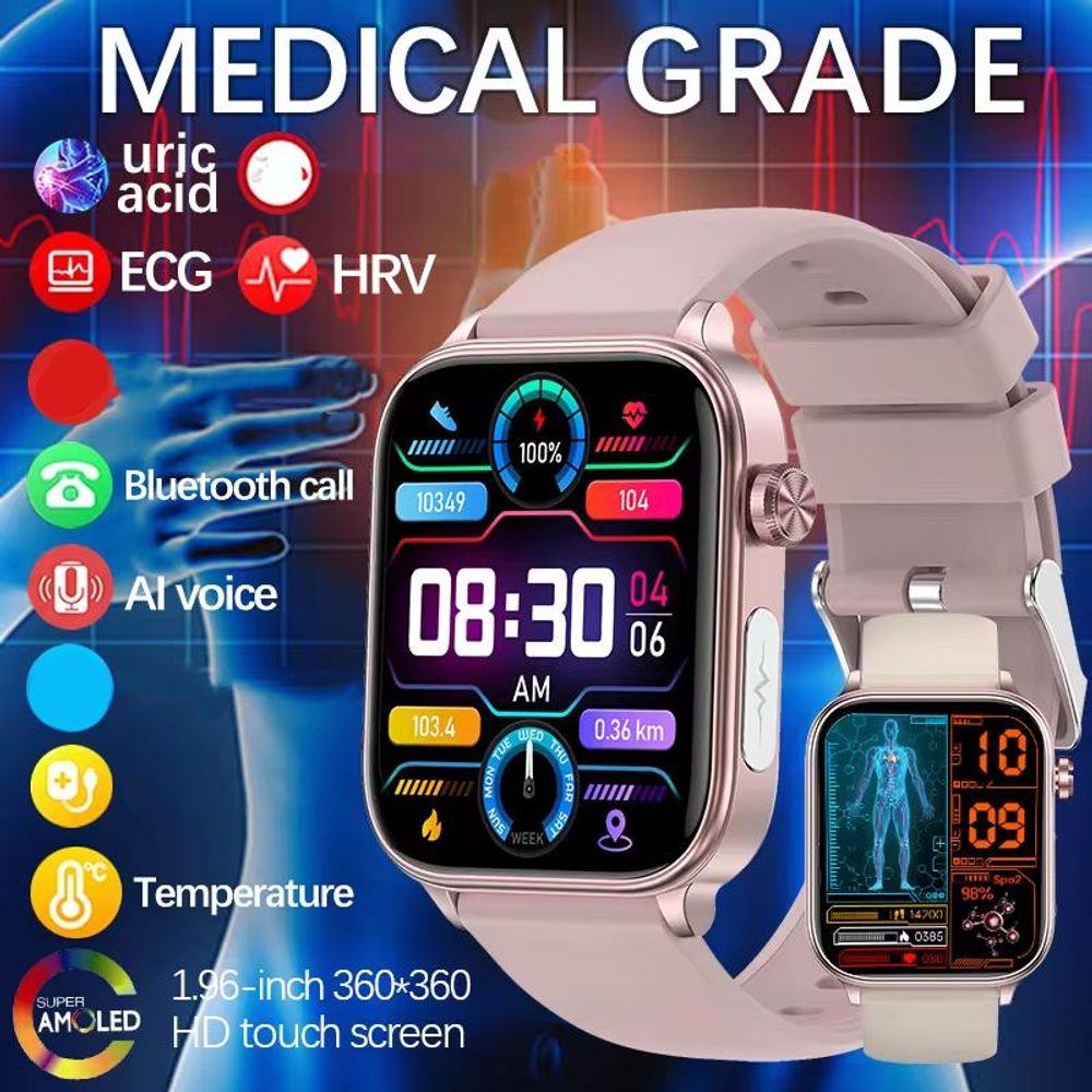 Função de eletrocardiograma (ECG), chamada via Bluetooth, monitoramento de ácido úrico e lipídios no sangue, teste de composição corporal (função de gordura corporal BMI), exame físico inteligente, função HRV, diagnóstico médico AI, função MET, monitoramento de temperatura corporal, monitoramento de oxigênio no sangue, treinamento de respiração, detecção de emoções, detecção de fadiga, monitoramento de estresse, saúde da mulher (rastreamento menstrual), monitoramento de frequência cardíaca, monitoramento de pressão arterial, monitoramento do sono, lembrete de sedentarismo e outras funções de saúde. Contagem de passos/calorias/distância, modo multi-esporte, controle de música, jogos, assistente de voz inteligente.