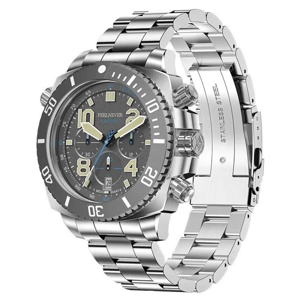 Relógio Masculino de Quartzo de Mergulho Esportivo Aço Inoxidável foi criado para homens que vivem a vida com intensidade. Seu design robusto, aliado ao material de alta qualidade, oferece resistência e durabilidade superiores. Seja em um jantar formal, um dia de trabalho ou em suas aventuras subaquáticas, este relógio proporciona um estilo versátil e sempre elegante.O mostrador detalhado, disponível nas opções de cores