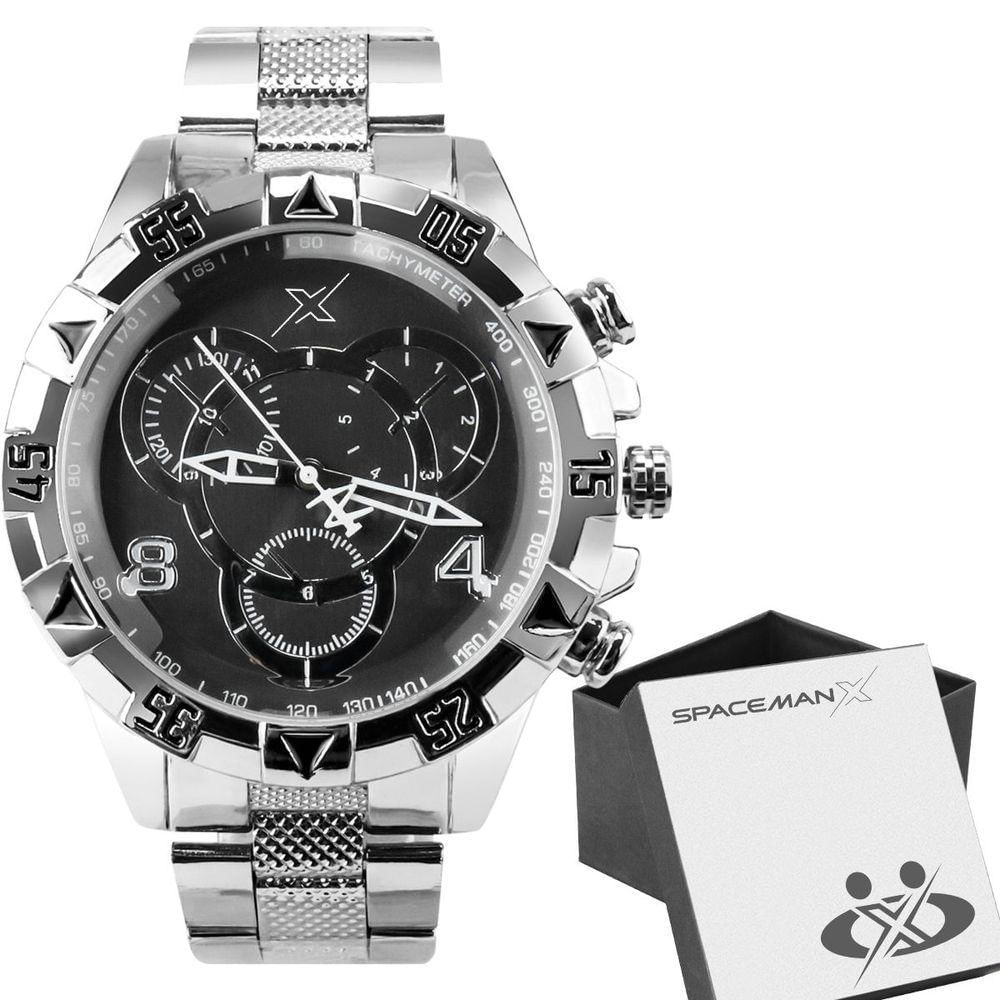 Relogio Prata Masculino Aço Inoxidavel + Premium Caixa Grande Mostrador Preto Presente Social Casual
