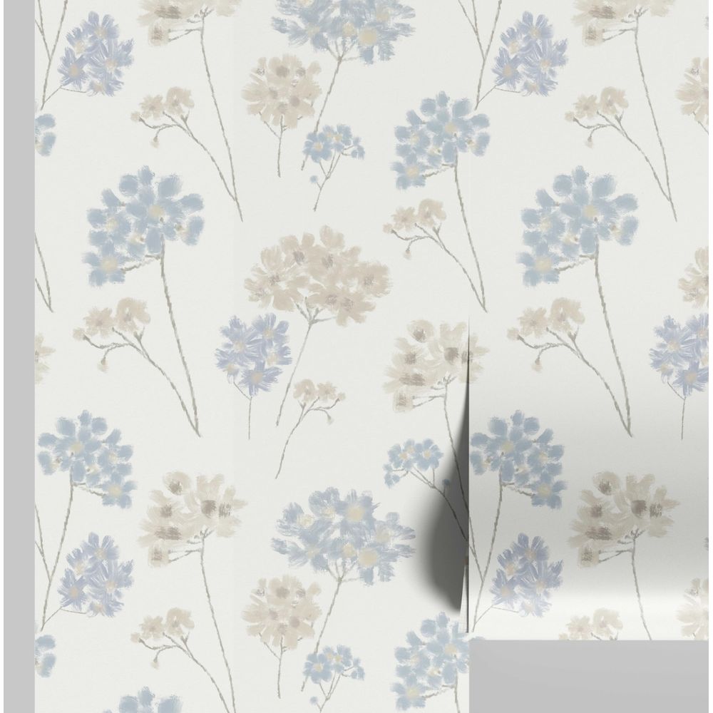 Revestimento de Parede Autoadesivo Floral Pastel em Vinil Removível, Mural Moderno Azul para Quarto, Banheiro, Lavanderia, Closet - S4Sassy 63,5 cm (L) × 152,4 cm (C) / Azul - Vinil Liso