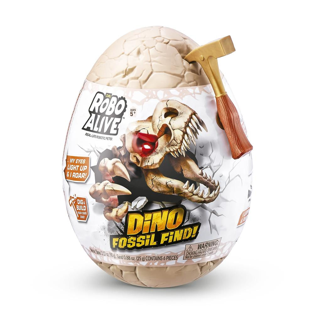 Junte-se à aventura com Robo Alive Dino Fossil Find Surprise! Cave através de rochas, areia e slime usando a ferramenta de escavação para encontrar os 4 fósseis do dinossauro. Monte os fósseis para dar vida ao seu esqueleto de dinossauro! Uma vez montado, este esqueleto ganha vida! Puxe a cauda do dinossauro para ver seus olhos se iluminarem e soltar um temível rugido de dinossauro! Você pode achar o temível T-Rex, o assustador Triceratops, o incrível Anquilossauro ou o impressionante Estegossauros. Qual dinossauro pré-histórico você encontrará? São 4 modelos diferentes pra descobrir, montar e colecionar. Com Robo Alive Dino Fossil Find Surprise a brincadeira ficará muito mais divertida!