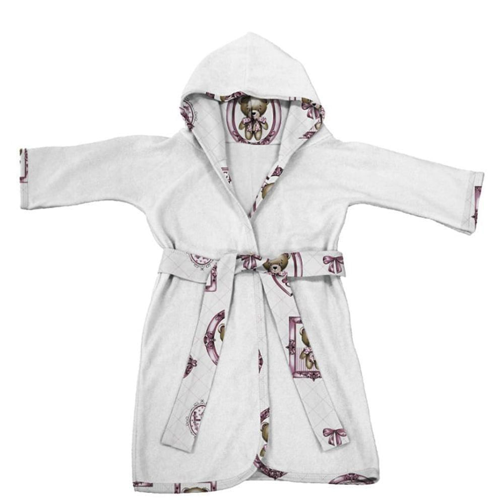 Roupão Infantil Tecebem Com Capuz Malha Cristina Plush Atoalhado Branco