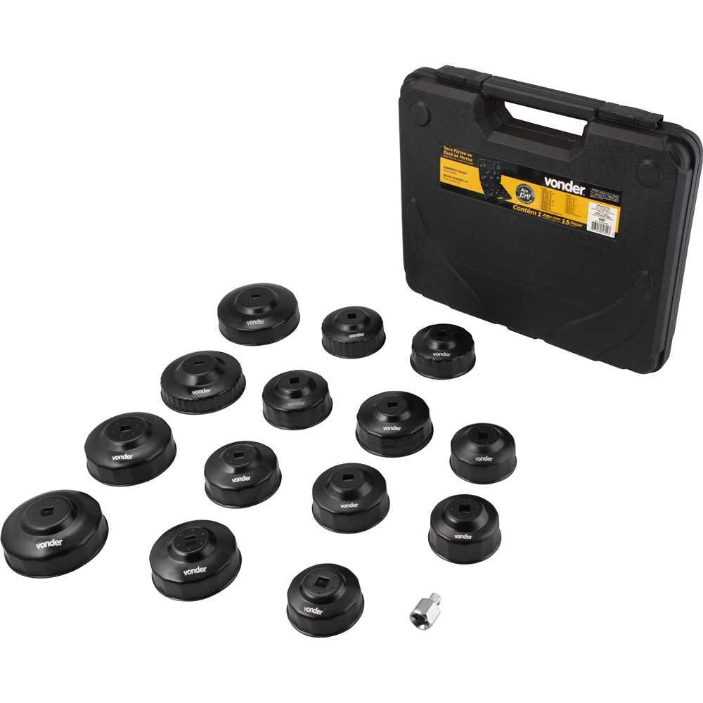 Indicado para sacar e fixar filtros de óleo em veículos. Possui grande variedade de aplicação. Conta com maleta com encaixe para todas as peças do jogo, garantindo comodidade e organização no transporte. Esta ferramenta não atende todas as montadoras, veículos/ano e/ou modelos de filtros de óleo do mercado, verifique compatibilidade. Material (tipo/composição): Cromo Vanádio (CrV) | Acabamento: Pintado | Medida do encaixe: Encaixe quadrado 1/2" | Acessórios/peças que acompanham o produto: 1 copo 65 mm - 14 F / 1 copo 65 e 67 mm - 14 F / 1 copo 68 mm - 14 F / 1 copo 74 mm - 15 F / 1 copo 76 mm - 30 F / 1 copo 76 mm - 14 F / 1 copo 74 e 76 mm - 15 F / 1 copo 75 e 77 mm - 15 F / 1 copo 80 mm - 15 F / 1 copo 80 e 82 mm - 15 F / 1 copo 90 mm - 15 F / 1 copo 93 mm - 15 F / 1 copo 93 mm - 36 F / 1 copo 100 mm - 15 F e 1 adaptador para encaixe quadrado de 3/8". | Massa aproximada (peso) (kg): 2,6 kg