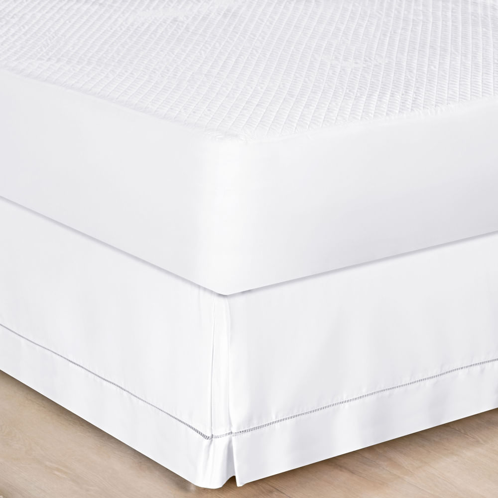 Saia Cama Casal Padrão Box Percal 180 Fios Acabamento em Ponto Palito - Branca