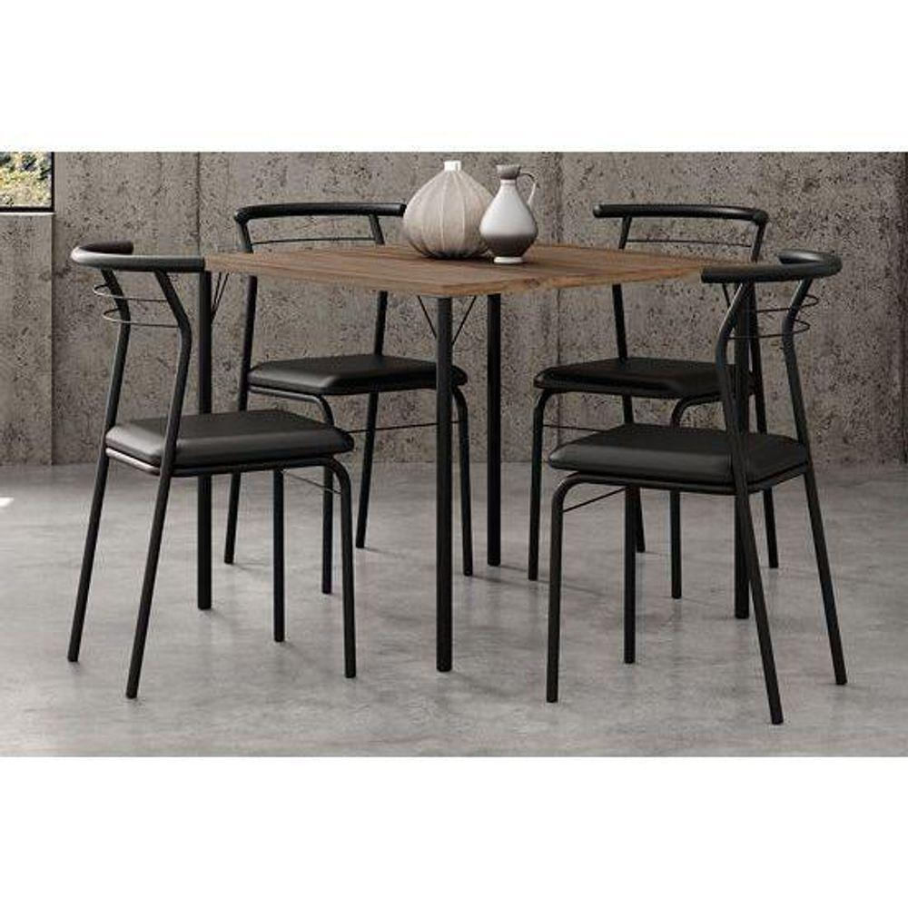 Sala De Jantar Completa 1545 Aço C/ Tampo Madeirado 87x87cm E 4 Cadeiras 1708 Preto/legno - Preto/preto - Carraro