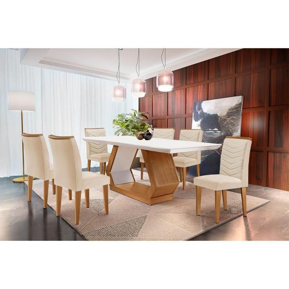 Sala De Jantar Completa Alvorada C/ Tampo Madeirado Canto Reto 180x90cm E 6 Cadeiras Londrina Imbuia/off White - Suede Creme - Rufato