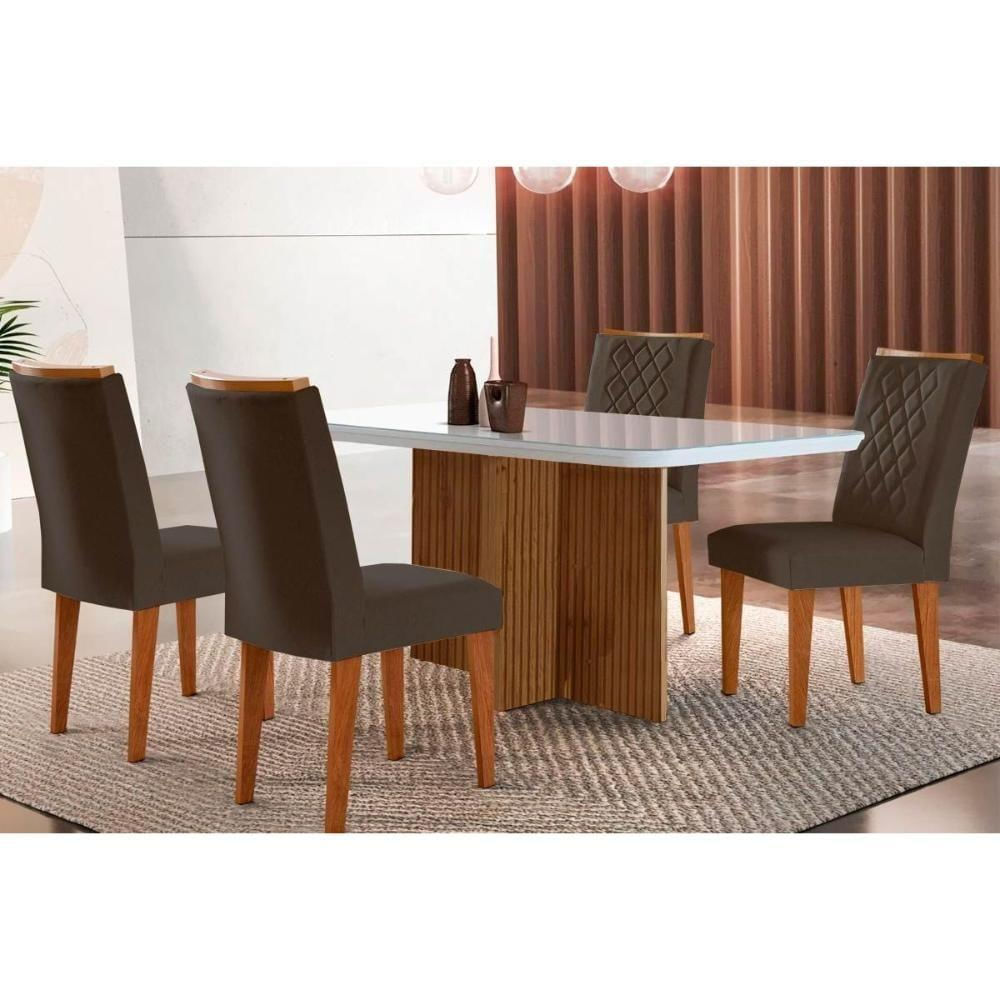 Sala De Jantar Completa Berlim C- Tampo Madeirado C- Vidro Canto Curvo 120x80cm E 4 Cadeiras Jade Imbuia-off White - Linho Grafite - Rufato