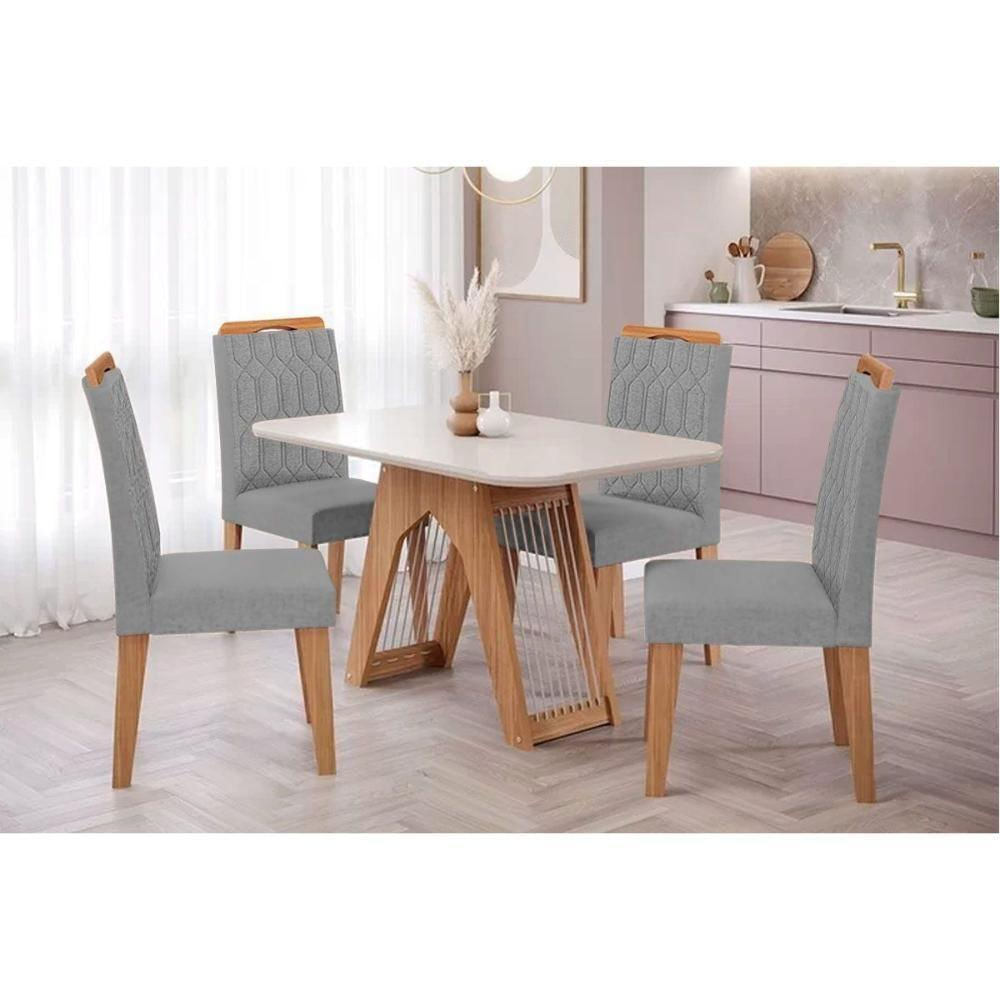 Sala De Jantar Completa Carol Tampo Madeirado C/ Vidro 130x80cm E 4 Cadeiras Paola Nature-madeirado/grafite - Cimol