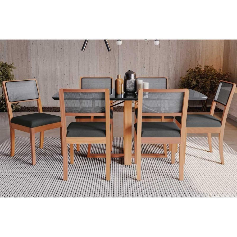 Sala De Jantar Completa Elma Tampo Madeirado C/ Vidro 90x160cm E 6 Cadeiras Lola Carvalho/preto Fosco/vidro Preto - Linho Cinza - Kappesberg