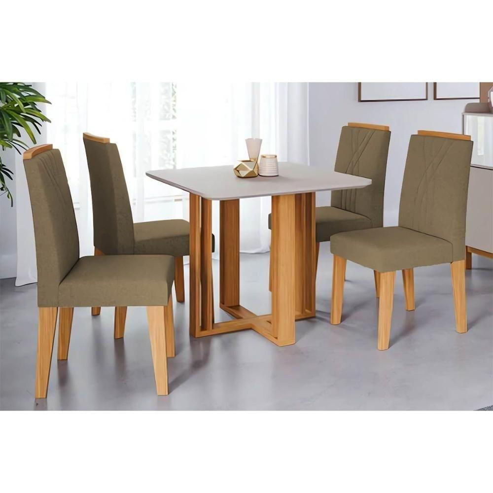 Sala De Jantar Completa Flora Tampo Madeirado C/ Vidro 95x95cm E 4 Cadeiras Nicole Savana/nature-suede Pluma-joli Capuccino - Cimol