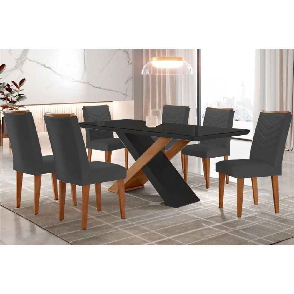 Sala De Jantar Completa Imperatriz Tampo Madeirado C/ Vidro Canto Curvo 180x90 E 6 Cadeiras Londrina Imbuia/grafite - Suede Grafite - Rufato