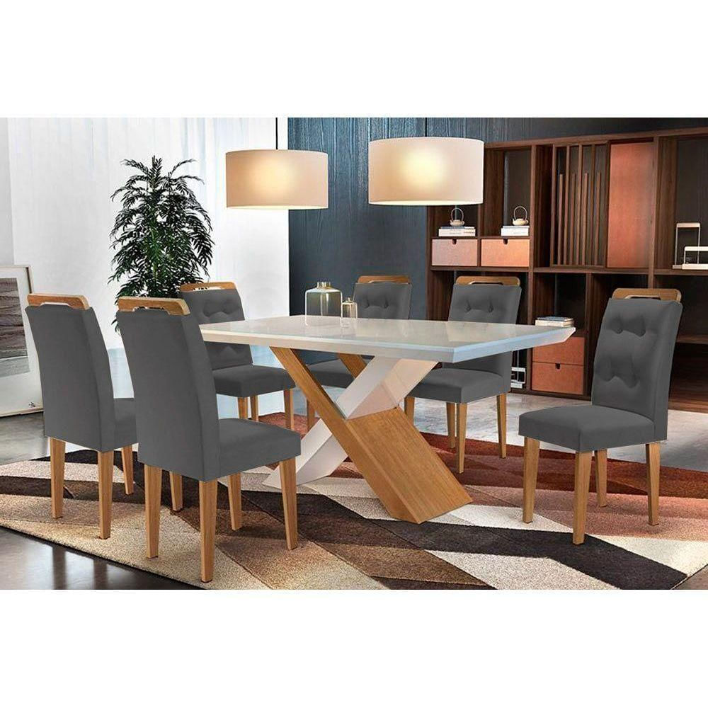 Sala De Jantar Completa Imperatriz Tampo Madeirado C/ Vidro Canto Reto 180x90cm E 6 Cadeiras Imperatriz Imbuia/grafite - Rufato