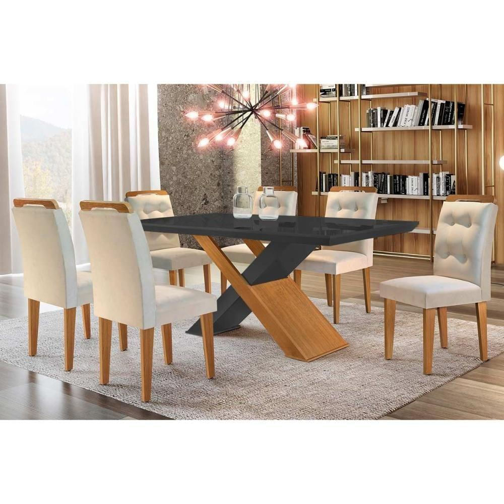 Sala De Jantar Completa Imperatriz Tampo Madeirado C/ Vidro Curvo 180x90 E 6 Cadeiras Imperatriz Imbuia/grafite - Suede Creme - Rufato