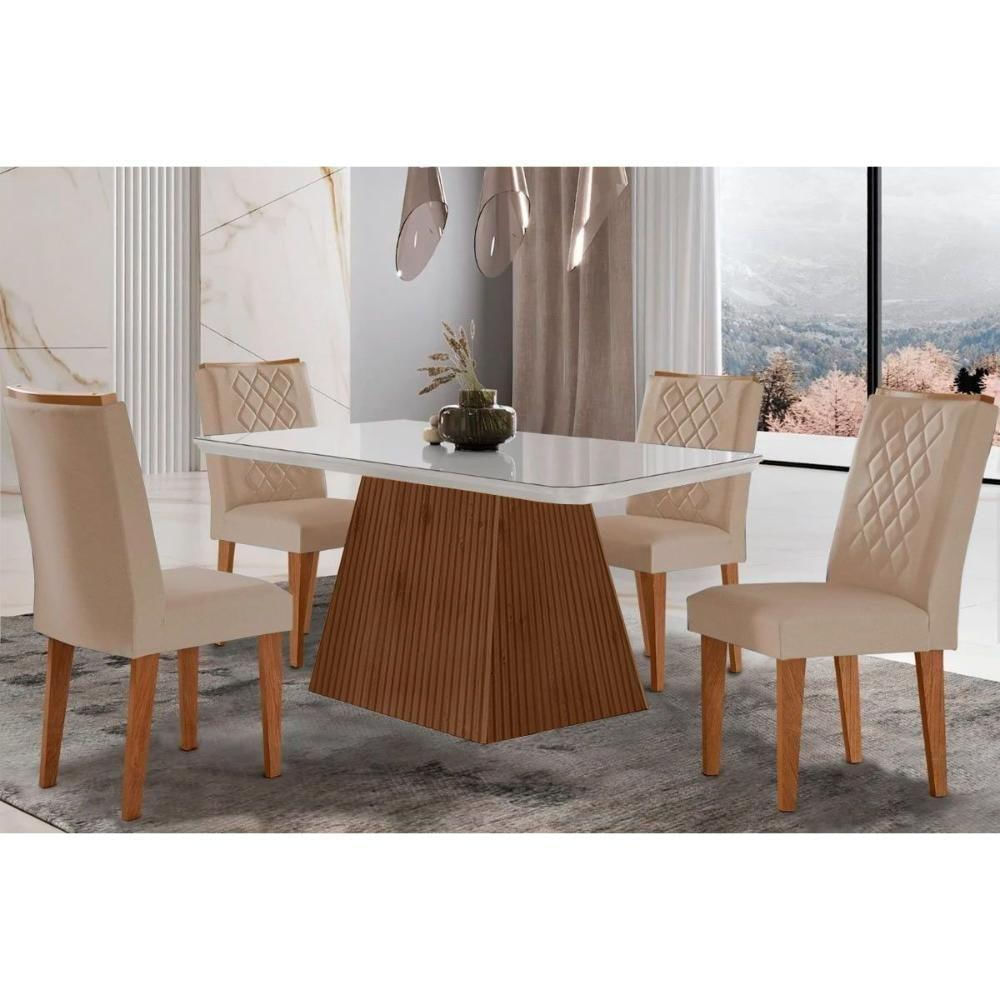 Sala De Jantar Completa Luna C/ Tampo Madeirado C/ Vidro Canto Curvo 120x80cm E 4 Cadeiras Jade Imbuia/off White - Suede Creme - Rufato