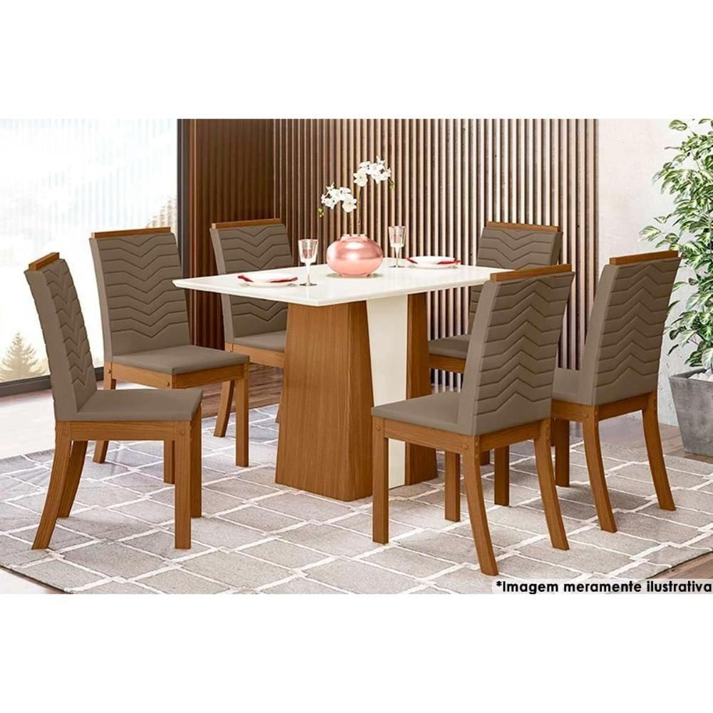 Sala de Jantar Completa Orus Tampo Madeirado 120x80cm e 6 Cadeiras Isa Nature/Off White - Suede Marrom - Henn