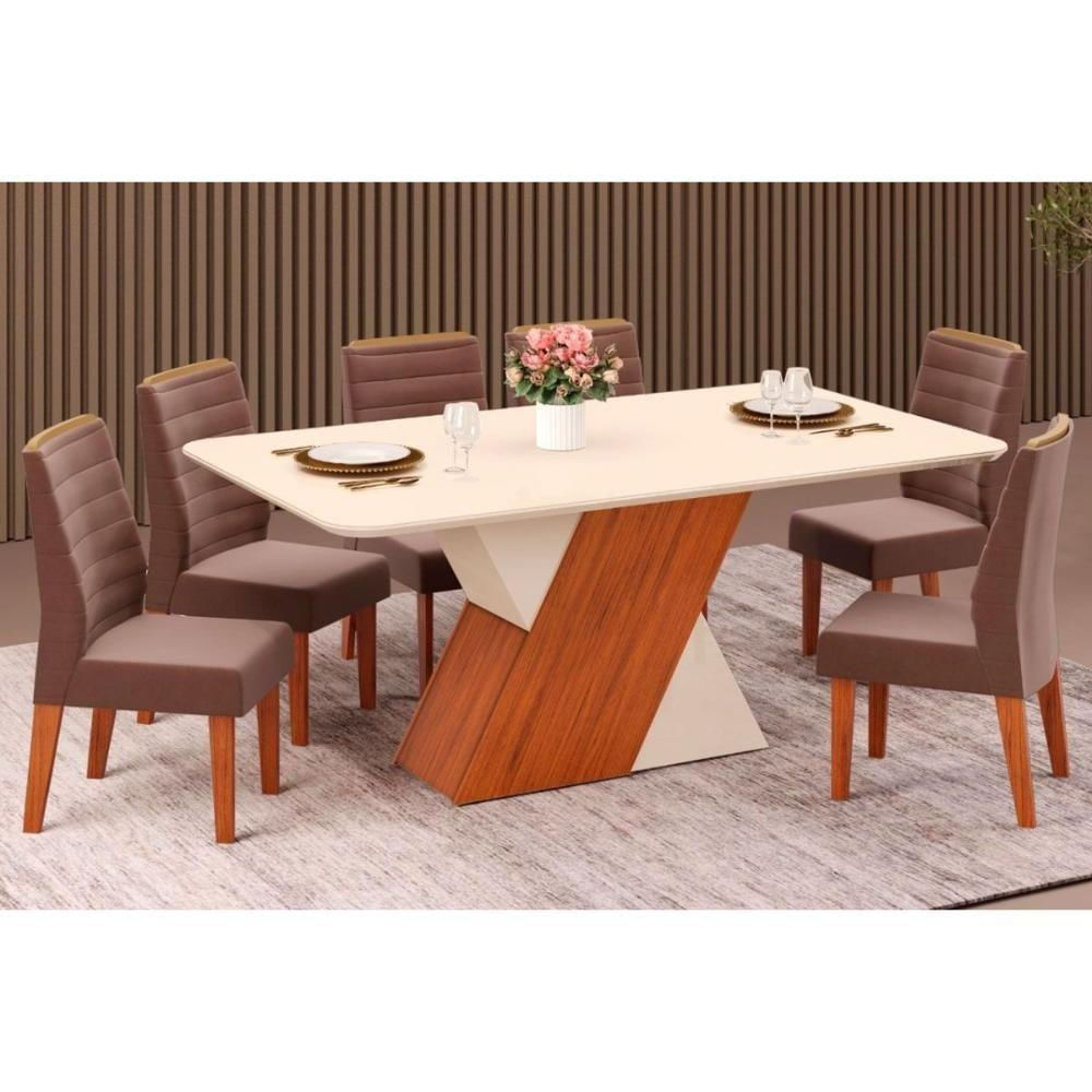 Sala De Jantar Completa Rubi C/ Tampo Madeirado C/ Vidro 170x90cm E 6 Cadeiras Ondina Freijo/off White/off White - Suede Moca - Dj Móveis