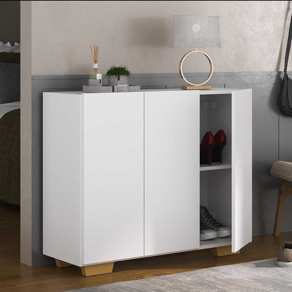 A Sapateira 3 Portas Nina Multimóveis é produzida em MDP com acabamento acetinado (cerca de 20% de brilho), que garante maior durabilidade, facilidade na limpeza, além de um acabamento superior. Com 3 portas, possui um excelente espaço interno para acomodar seus sapatos e demais pertences (as prateleiras internas suportam 2 e 5 Kg e o tampo 7 Kg). Os pés quadrados, em polipropileno, facilitam na hora da limpeza. Compacta, é uma excelente opção para otimizar seu ambiente, para que você possa aproveitá-lo da melhor maneira possível.