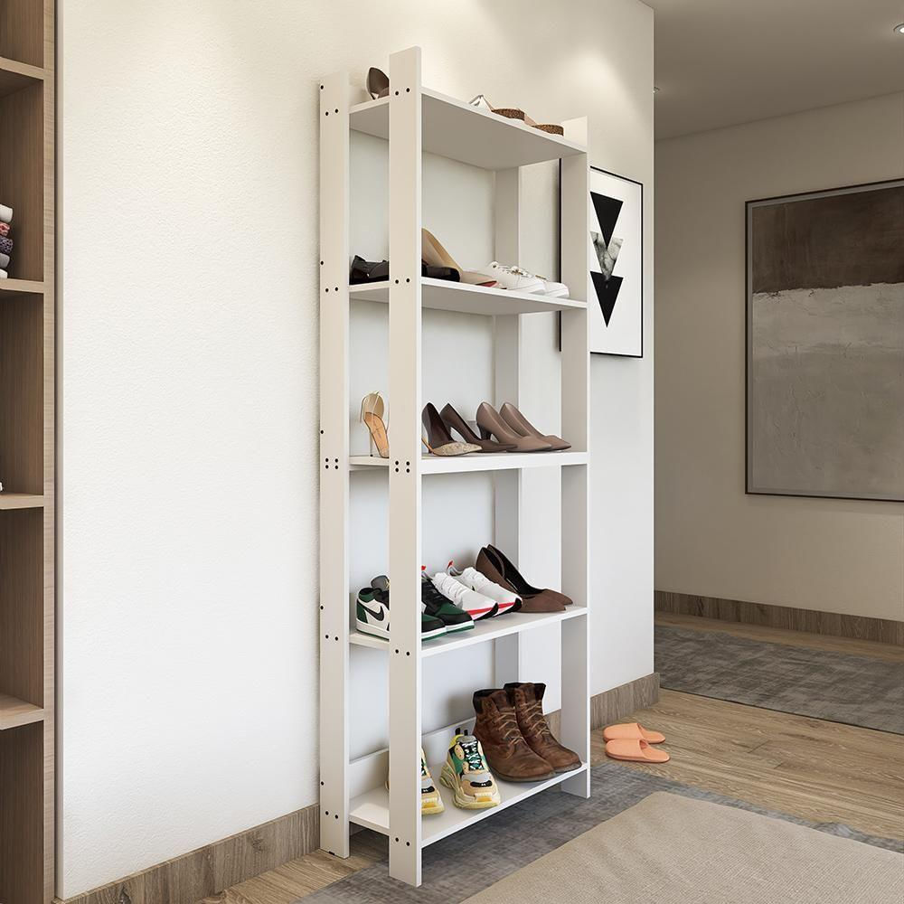 Sapateira Multiuso Para Calçados 5 Andares - Organizador MDP 15mmTransforme a organização dos seus calçados com a Sapateira Multiuso Para Calçados 5 Andares da marca Movlar. Este organizador é a solução ideal para quem busca praticidade, resistência e um toque de elegância para o ambiente. Com um design moderno e funcional, ele se adapta perfeitamente a qualquer espaço, seja no quarto, closet ou hall de entrada.Características do ProdutoDesenvolvida com uma estrutura 100% parafusada, esta sapateira garante máxima firmeza e durabilidade, proporcionando ao armazenar seus calçados. A seguir, conheça os principais atributos que fazem deste produto uma escolha excepcional: Dimensões: Altura de 177 cm, largura de 66 cm e profundidade de 30 cm, oferecendo amplo espaço para acomodar diversos tipos de sapatos. Material: Estrutura em MDP 15mm, que assegura robustez e resistência. Capacidade: Suporta até 25kg, ideal para uma coleção variada de calçados. Design: 5 andares de prateleiras, permitindo uma organização eficiente e prática. Estabilidade: Pés com sapatas plásticas que protegem o piso e garantem maior estabilidade. Acabamento: Pintura em todos os lados, proporcionando um visual impecável de qualquer ângulo.Cuidados e ManutençãoPara garantir a longevidade da sua sapateira, siga estas recomendações: Limpe com pano seco ou levemente umedecido. Evite produtos químicos abrasivos para preservar o acabamento da madeira. Proteja o móvel da exposição direta ao sol e umidade que escolher a Sapateira Multiuso Movlar?Se você busca um móvel que otimize o espaço e traga mais organização ao seu dia a dia, a Sapateira Multiuso Para Calçados 5 Andares é a escolha perfeita. Com sua estrutura resistente e design moderno, ela não só ajuda a manter seus calçados organizados, mas também adiciona um toque de estilo ao seu ambiente.Não perca a oportunidade de transformar sua organização! Adquira a sua Sapateira Multiuso Para Calçados 5 Andares hoje mesmo e experimente a praticidade e elegância que ela pode trazer ao seu lar! Cor: Nature/Branco | Altura: 177 cm | Largura: 66 cm | Profundidade: 30 cm | Requer Montagem: Sim | Fabricante: Movlar | Quantidade de caixas de embalagem: 1 | Cor: Branco