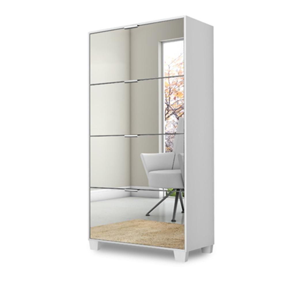 Sapateira Pequim - Com Espelho 4 Portas Com Pés De Madeira Branco - Rede Móveis