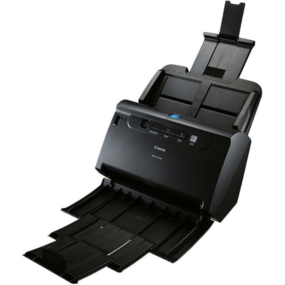 Scanner de Mesa Canon A4 - DR-C240O imageFORMULA DR-C240 é um scanner de mesa ultracompacto e poderoso com um design robusto e manuseio de papel confiável para capturar vários tamanhos e formatos de documentos, incluindo passaportes. Seu alimentador suporta até 60 folhas e com velocidade de até 90 ipm.Velocidade de até 45 ppm / 90 ipmPode digitalizar imagens de até 3m de comprimento, sendo capaz de realizar até 4000 digitalizações por dia. Acompanha os softwares: CapturePerfect que permite a digitalização em OCR e lotes no scanner; suporta o controlador Kofax VRS; Software CaptureOnTouch para digitalizar documentos e enviá-los para vários destinos, incluindo serviço cloud.Especificações: