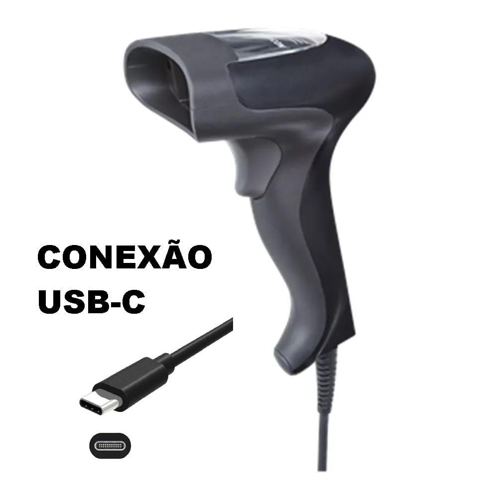 Leitor de Código de Barras BarCode Scanner com Plug Conector Tipo-C USB-C Type-C para Celular Smartphone Tablet com conexão USB-C