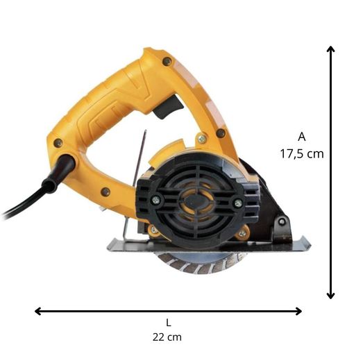 FICHA TÉCNICA: - Cor: Amarelo com Preto - Potência Elétrica: 1300 W - Tensão: 127V - Frequência: 60 Hz - Motor: Universal - Rotações: 12.000 rpm (min-1) - Torque: 1,6 Nm - Classe de Proteção: II - Profundidade de Corte (Corte Reto): 90° - 34mm - Diâmetro do Disco de Corte: 4.3/8" - 110mm (Não Acompanha Disco de Corte) - Cabo Elétrico: 2 metros - Regulagem de Altura: Sim - Sistema Rápido de Troca de Escova de Carvão: Sim - Botão de Trabalho Contínuo: Sim - Peso Líquido: 2,6 Kg - Peso Bruto: 2,9 Kg - Cubagem: 0,0091 m³ - Empilhamento Máximo: 4 - Dimensões do Produto (CxLxA): 22 x 21,5 x 17,5 cm - Dimensões da Embalagem (CxLxA): 22,5 x 22 x 18,5 cm