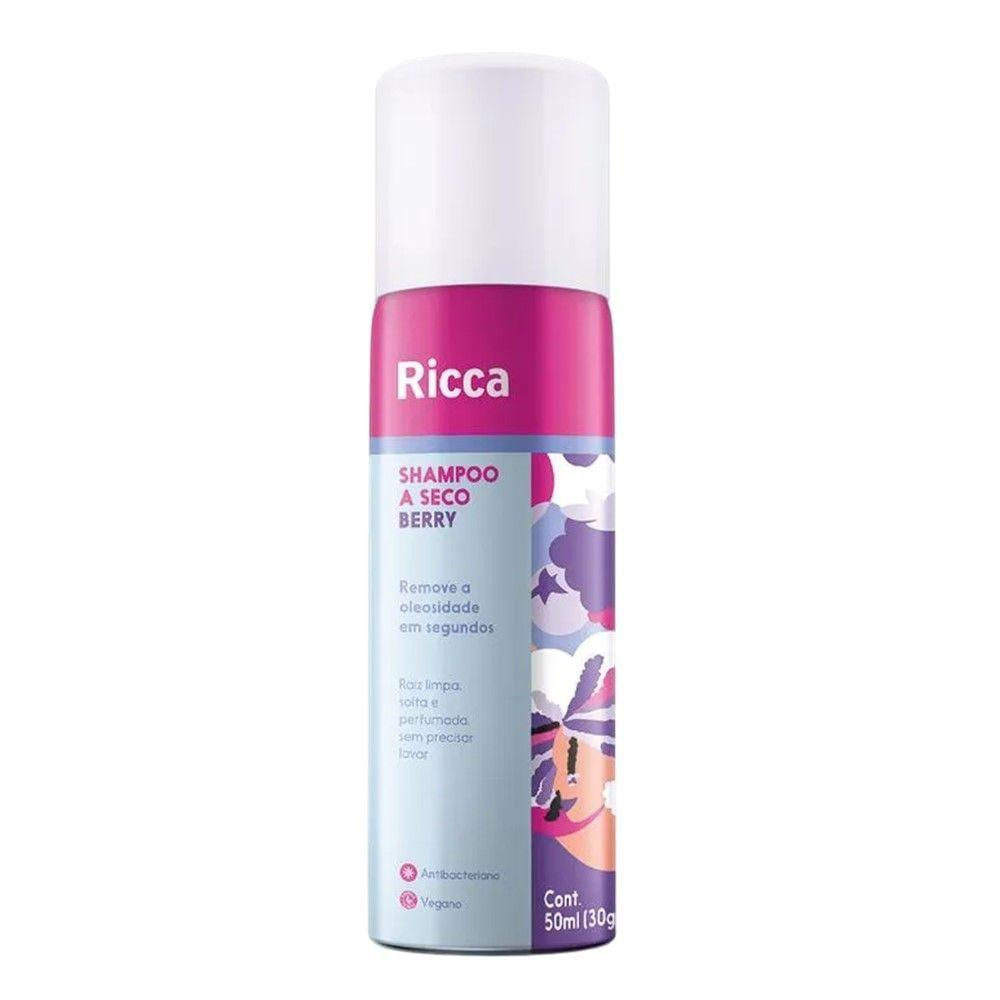 Shampoo a Seco Ricca de Bolso Remove Oleosidade Berry 50mlCabelo renovado em segundos, quando você decide não lavar.O Shampoo a Seco Berry é a solução perfeita para dias corridos! Ele absorve instantaneamente a oleosidade e devolve o volume à raiz, proporcionando aquele efeito acabei de sair do banho. Ele limpa e renova o visual, deixando os fios leves, soltos e com um irresistível cheirinho floral delicioso. É o toque final que você precisa para estar sempre radiante, mesmo quando não há tempo de lavar os cabelos.Os benefícios que você vai amar!- Remove a oleosidade instantaneamente- Raiz limpa, solta e perfumada, sem precisar lavar- Praticidade no dia a dia- Vegano- Fragrância floral inspirada em perfumariaComo usar o Shampoo a seco Ricca?1. Divida o cabelo em mechas.2. Agite o produto por cerca de 10 segundos.3. Aplique o produto nas áreas mais oleosas a uma distância de 30 cm.4. Deixe agir por alguns segundos.5. Faça massagens no couro cabeludo espalhando o shampoo a seco.6. Finalize escovando os fios para remover todo o excesso de produto.Código: 126762Referência: 2843Marca: RiccaCapacidade: 50mlPeso: 60gCor: IncolorMaterial: LíquidoDimensões do produto (AxLxC): 12,50x4,00x4,00cmConteúdo da embalagem: 1 Shampoo a seco 50ml