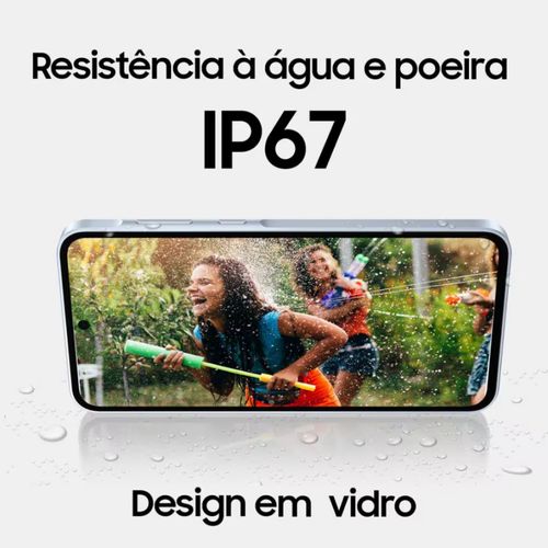 O Melhor da Fotografia Dentro do Seu Bolso Eleve sua experiência fotográfica com a Câmera Tripla de até 50MP do Galaxy A35 5G. Capture selfies perfeitas com a câmera de 13MP e utilize o Nightography para fotos incríveis mesmo à noite. E com o Apagador de Objetos, remova elementos indesejados das suas fotos. Elegância e Produtividade Em um Só Produto Desfrute de um design elegante e resistente em vidro com classificação IP67 contra água e poeira. Mergulhe em cores vibrantes e nitidez impecável na tela Super AMOLED FHD+ de 6.6, perfeita para assistir seus filmes e séries favoritos. O Vision Booster garante visualização perfeita sob qualquer luz solar. Mais Segurança Para Você Tenha a segurança de atualizações por até 4 anos do sistema operacional Android e por até 5 anos de atualizações de segurança. Proteja seus dados confidenciais com o Samsung Knox e o Cadeado Galaxy. Migre facilmente os dados do seu telefone antigo com o Smart Switch. A Vida Acontece Longe Das Tomadas Viva sem se preocupar com recargas com a bateria de longa duração para até dois dias e o carregamento rápido de até 25W.