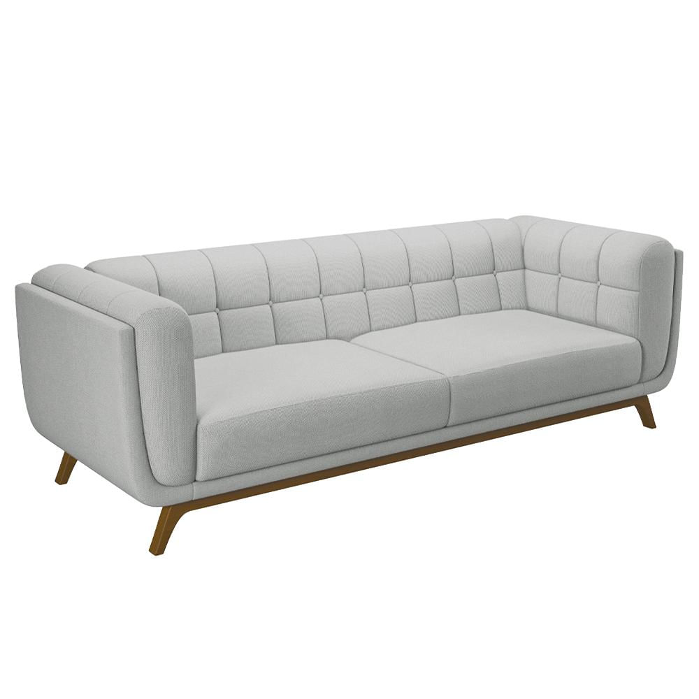 Sofá 03 Lugares Para Sala De Estar Pés Em Madeira 240cm Florian M03 Linho Cinza - Lyam Decor