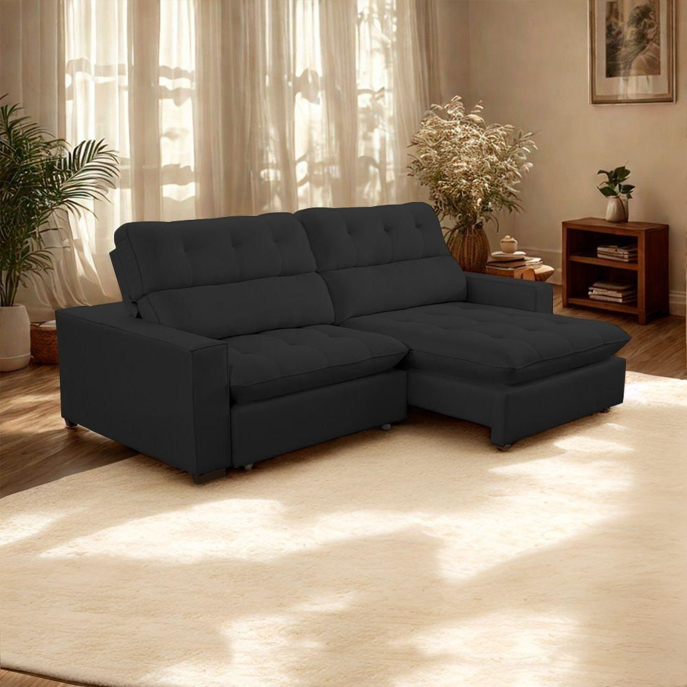 Sofá 2 Lugares 2,20m Retrátil Reclinável Veludo Andreia Lansofbr Preto