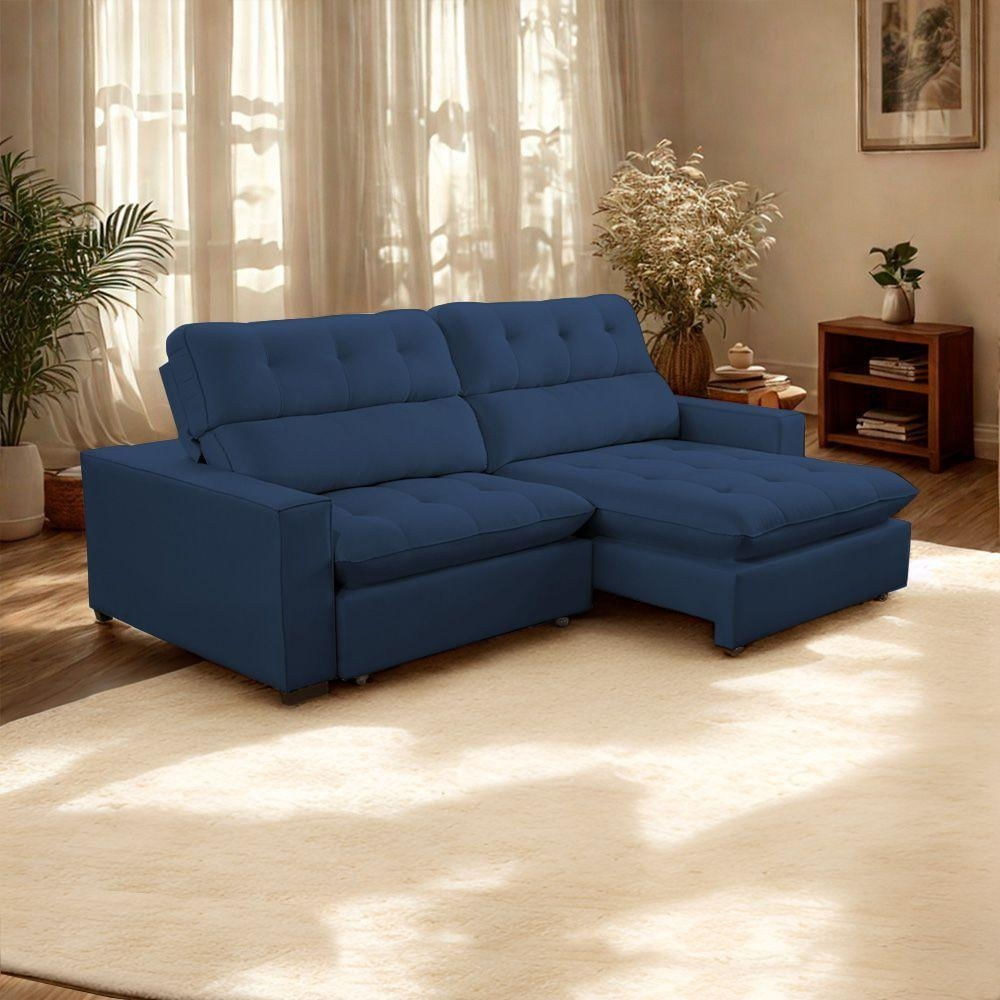 Sofá 2 Lugares 2,70m Retrátil Reclinável Veludo Andreia Lansofbr Azul Marinho