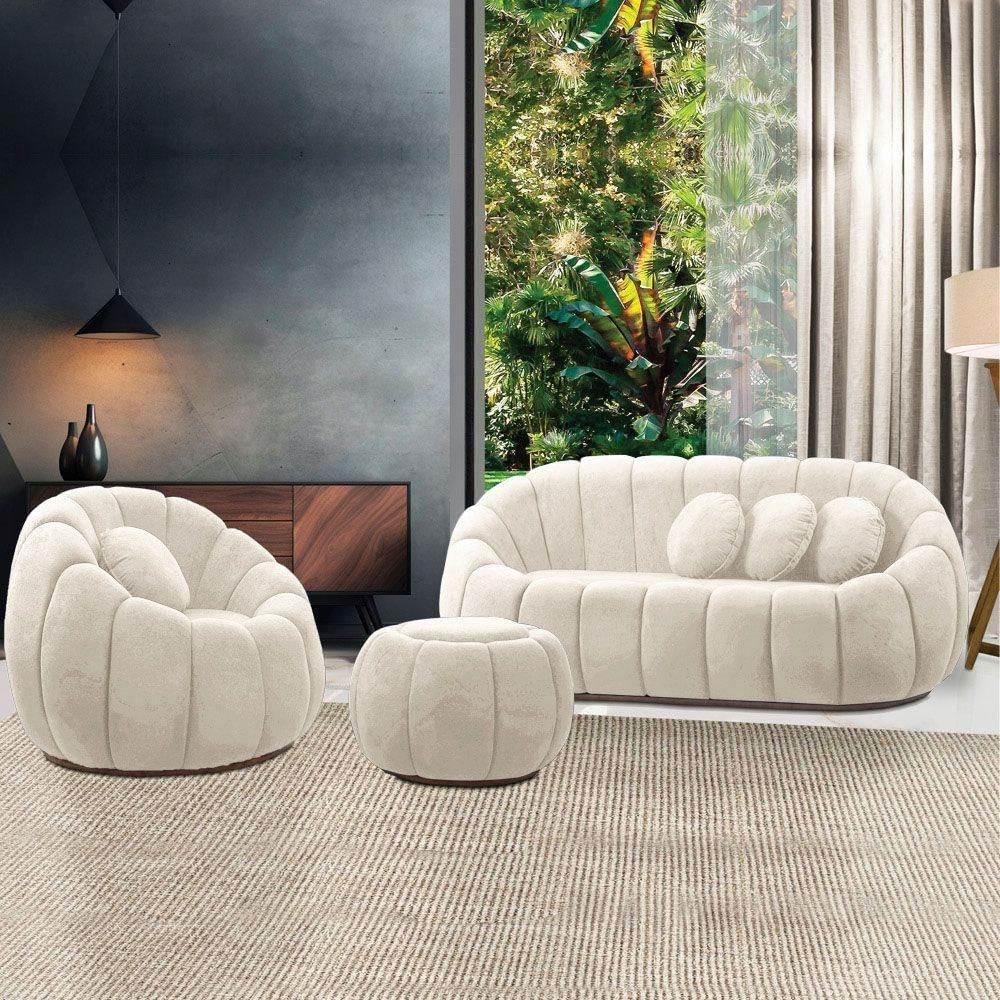 Sofá 2 Lugares Com Puff E Poltrona Orgânica Fixa Cloud Bouclê Bege E03 - D'rossi