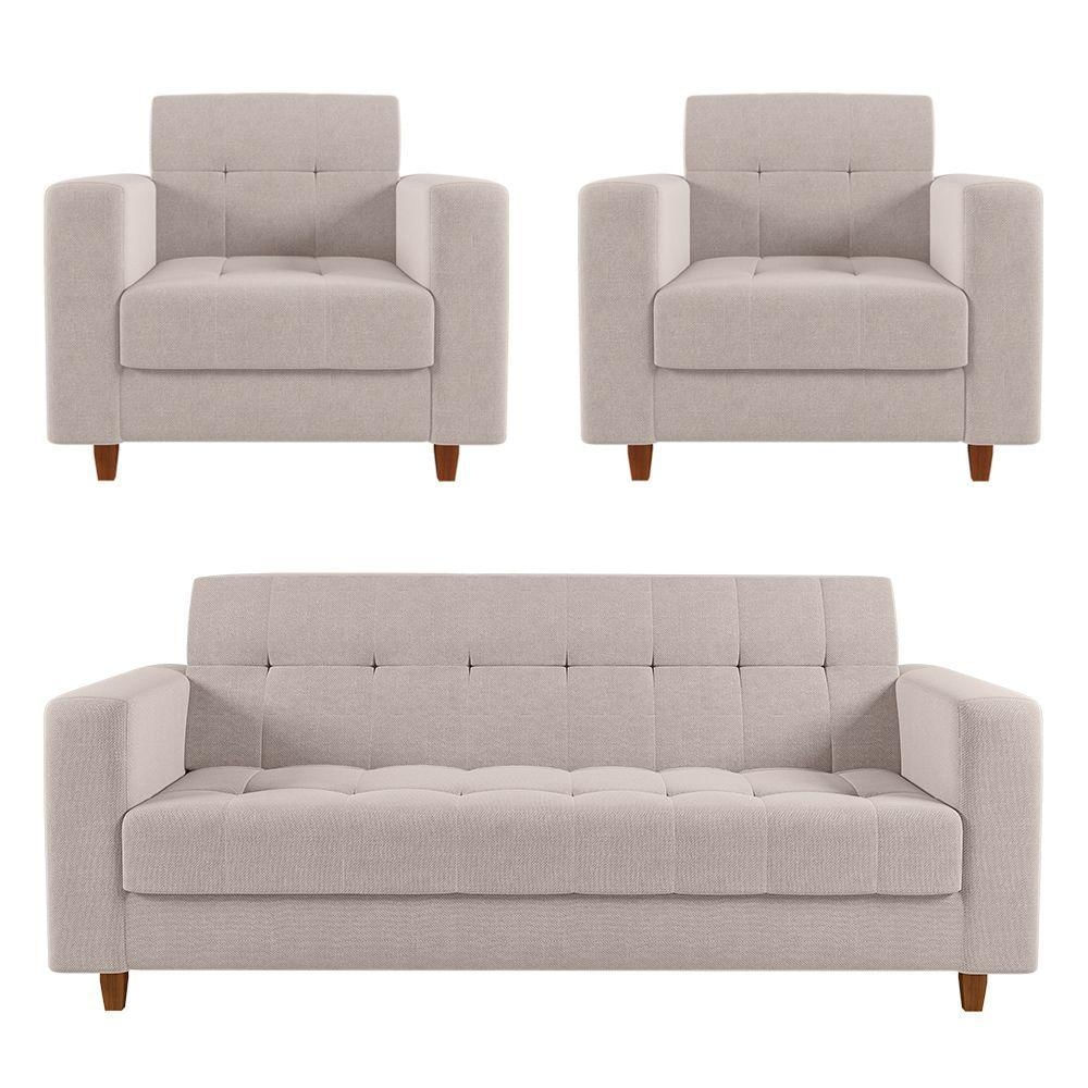 Sofá 2 Lugares E 2 Poltronas Pé Madeira Castanho Arezo Linho D01 - D'rossi Cor A19 Bege