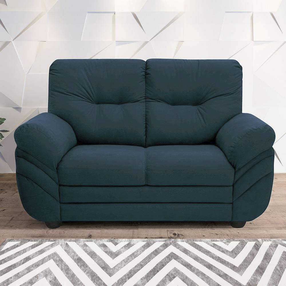 Sofá 2 Lugares Linoforte Francis com Almofadas Fixas e Revestimento em Suede 152cm de Largura Azul Petróleo