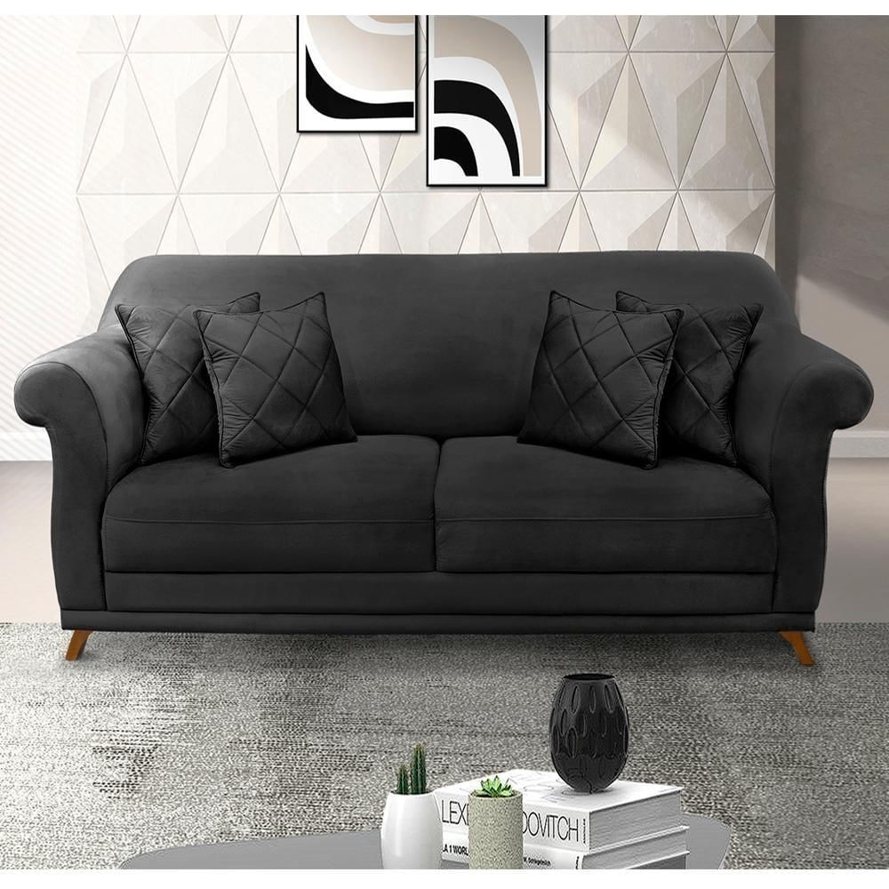 Sofá 2 Lugares Lorena Veludo 1,60m Pés Em Madeira Maciça - Preto Preto