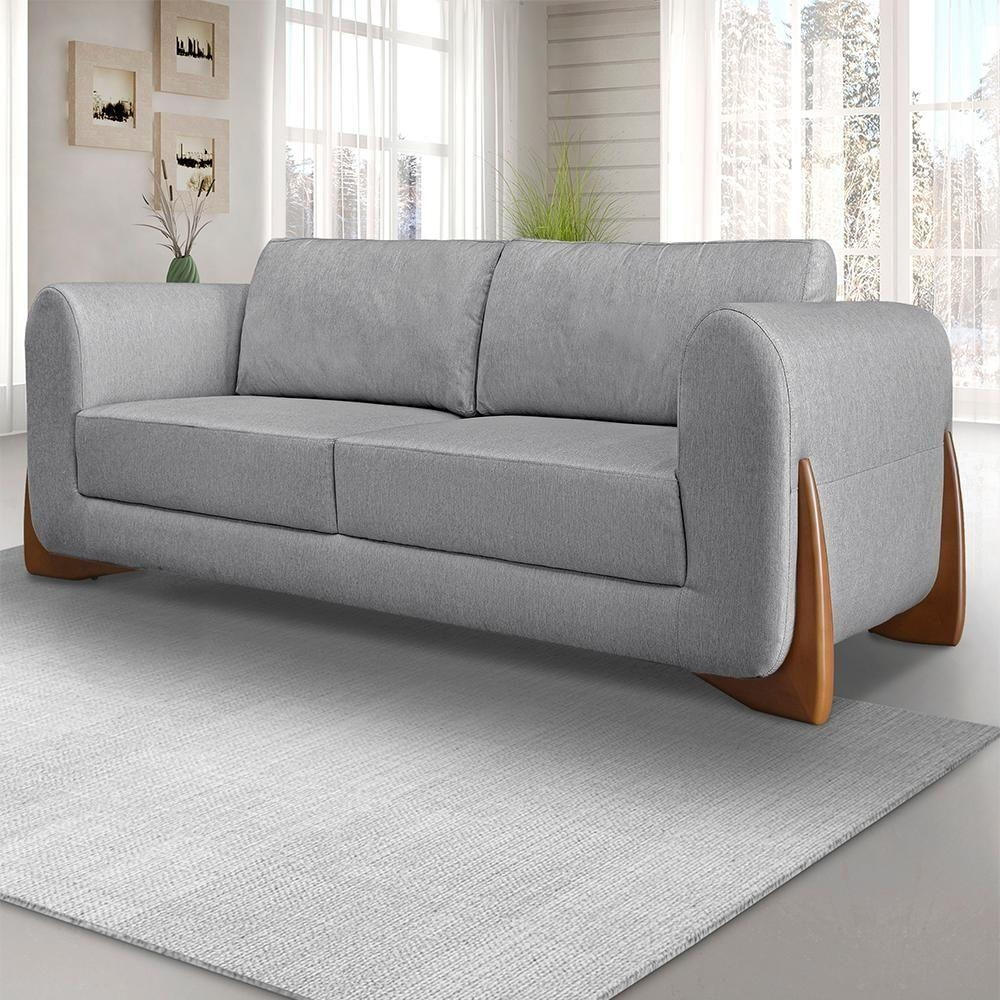 Sofá 2 Lugares Luxo Linho 1,60m Pés Em Madeira De Jequitibá - Cinza Cinza