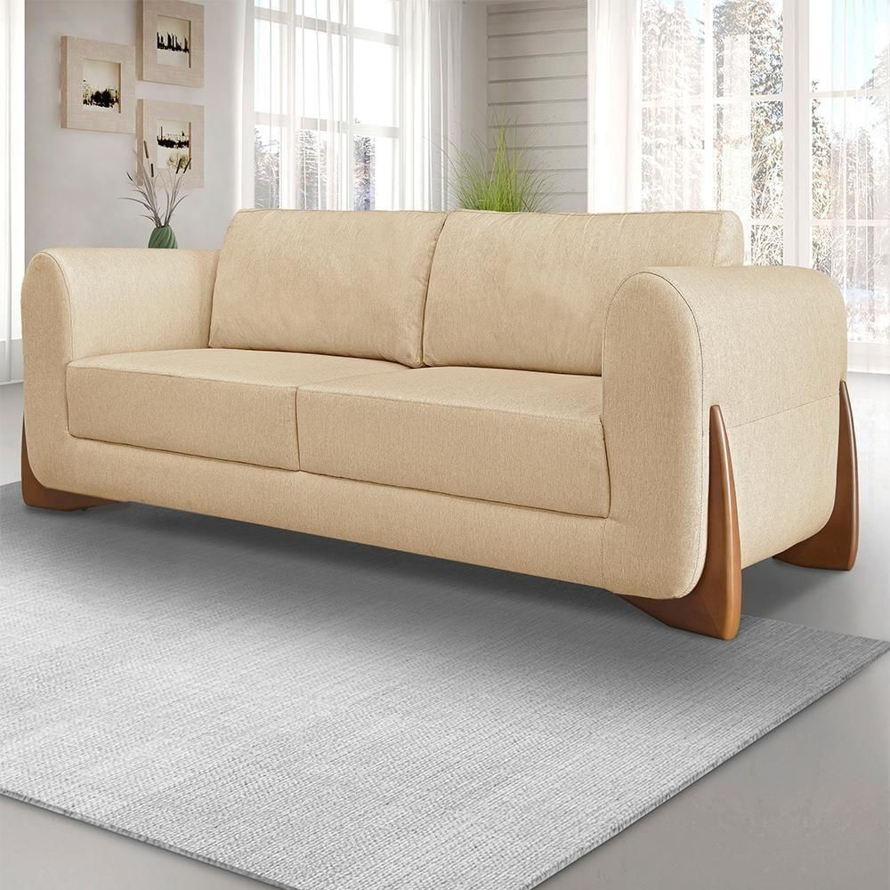 Sofá 2 Lugares Luxo Linho 1,60m Pés Em Madeira De Jequitibá - Dourado Dourado
