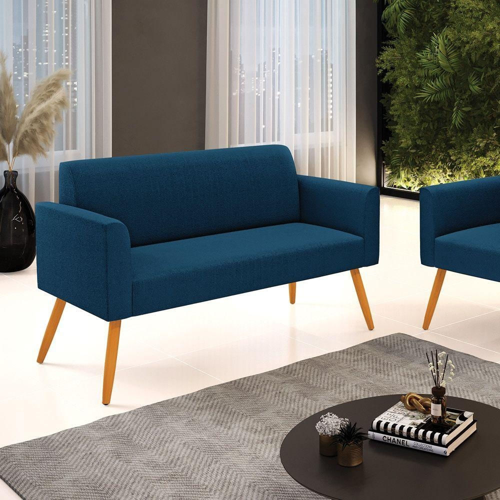 Sofá 2 Lugares Namoradeira Pé Palito Castanho Marisa Bouclê Cor Azul